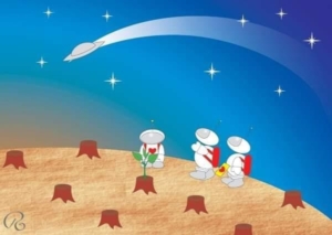 A mensagem era de esperança, com três astronautas, como os reis magos; a aeronave, como a estrela guia; e a plantinha nascendo em meio aos caos, assim como o menino Jesus.